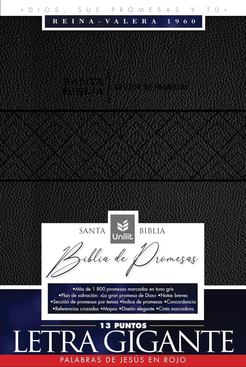 Biblia Reina Valera 1960 de Promesas · Letra gigante · Imitación piel negra con cierre