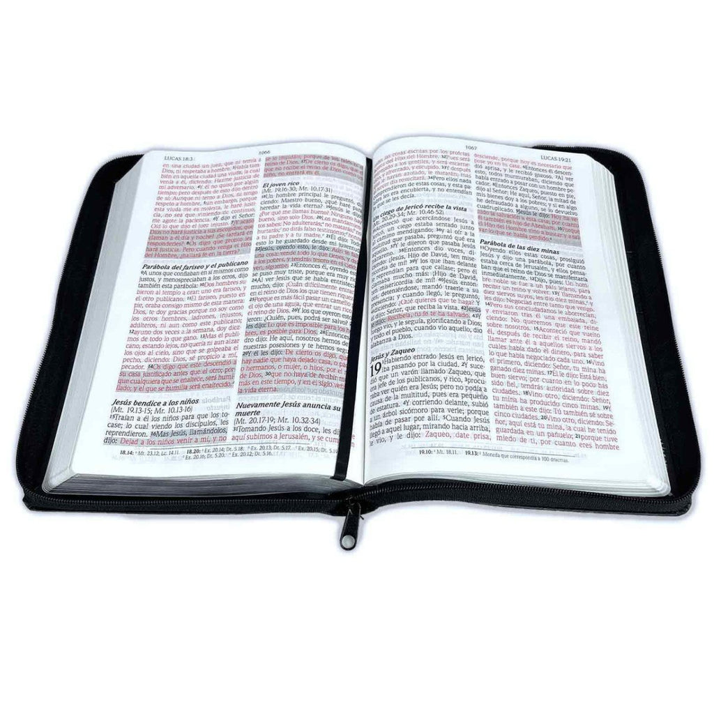 En nuestra Biblia de Promesas se resaltan más de 1800 promesas y palabras de afirmación de nuestro Dios para nosotros. Dios tiene las palabras que necesitamos tanto en nuestros momentos de mayor angustia como en nuestros episodios de mayor celebración. Las promesas de Dios te acompañan en todo momento y para siempre. La letra gigante de esta edición permite una fácil lectura, estudio e interacción con el texto bíblico.
